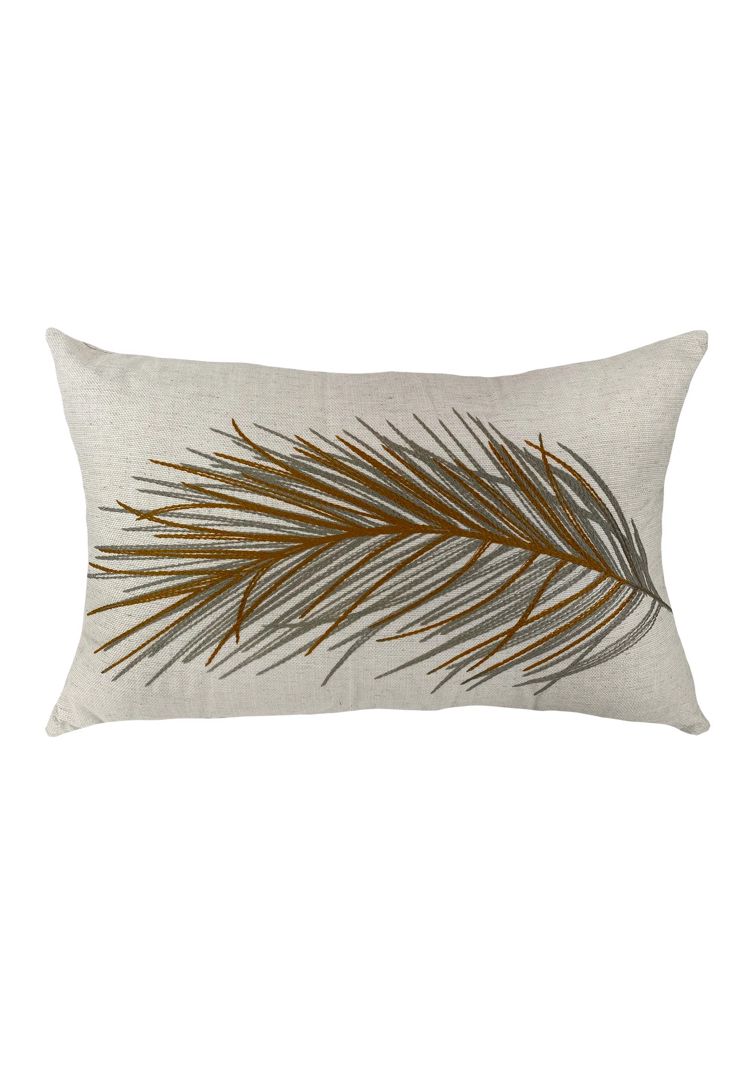 ALMOFADA EM LINHO C/ BORDADO EM FOLHA 35/50