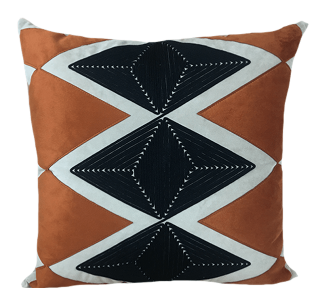 Almofada Veludo Com Aplique Mais Cordinha Ocre 52X52