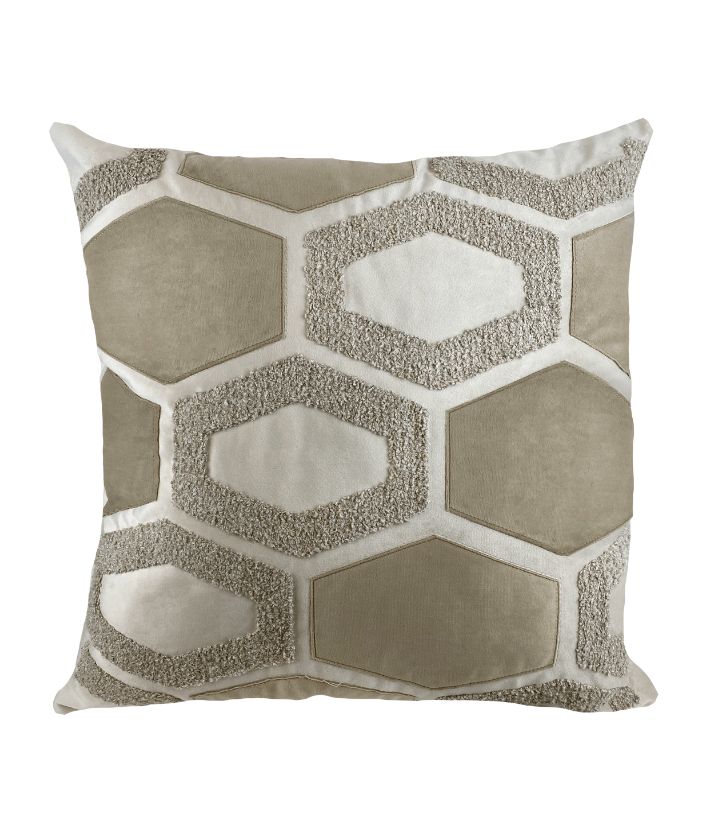 ALMOFADA VELUDO OFF 52X52 C/ APLICAÇÃO + BORDADO BOUCLE