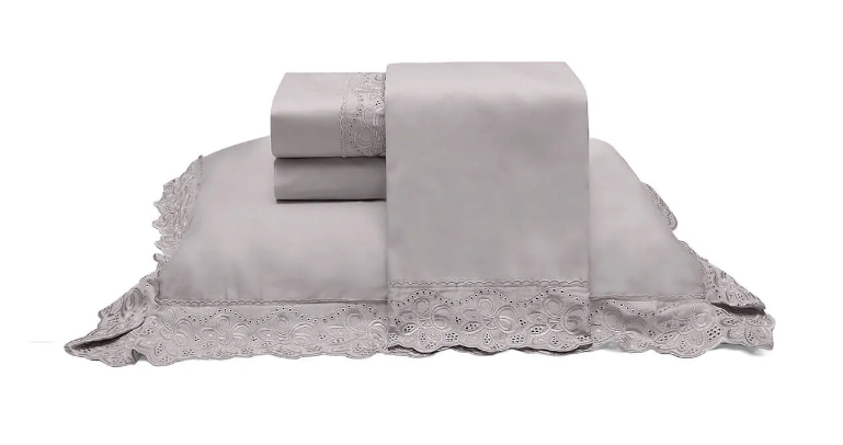 Jogo de Cama 300 Fios c/ Bordado Bege