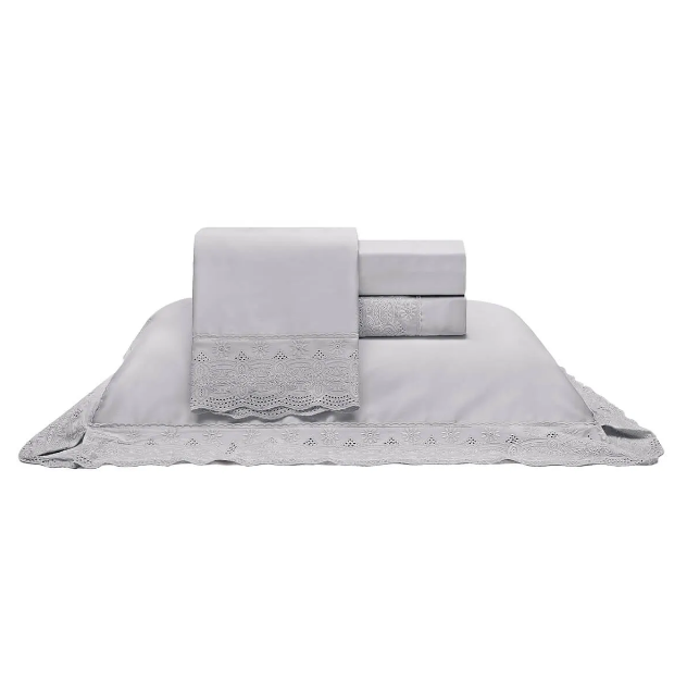Jogo de Cama 300 Fios c/ Bordado Prata
